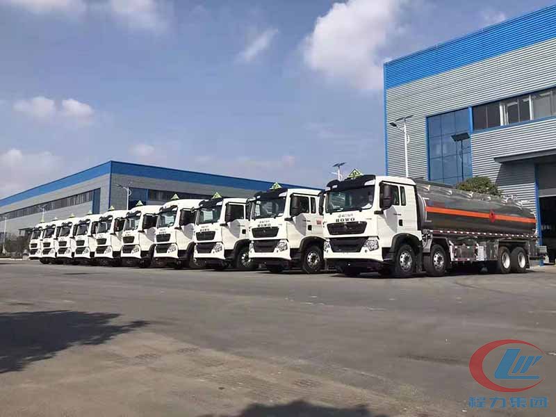 程力集团后双桥油罐车批量发车风采展示 程力汽车集团油罐车批量订单整装待发。 程力汽车集团油罐车专业厂前油罐车批量订单 程力集团重汽豪沃前四后...